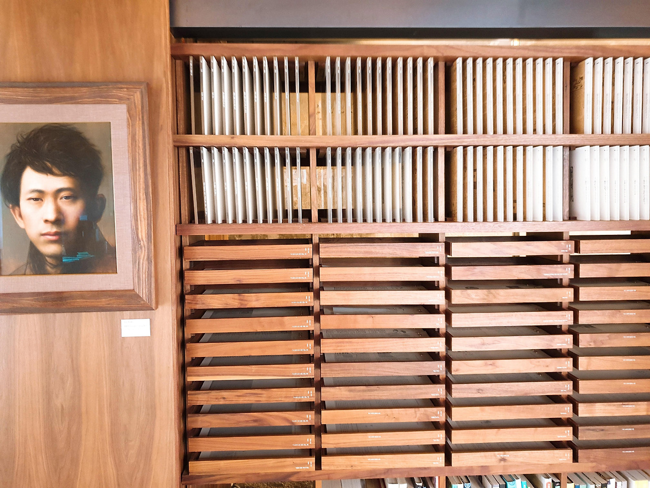 이상 작품의 복사본이 있는 책장 걱정말고 당기면 열린다.