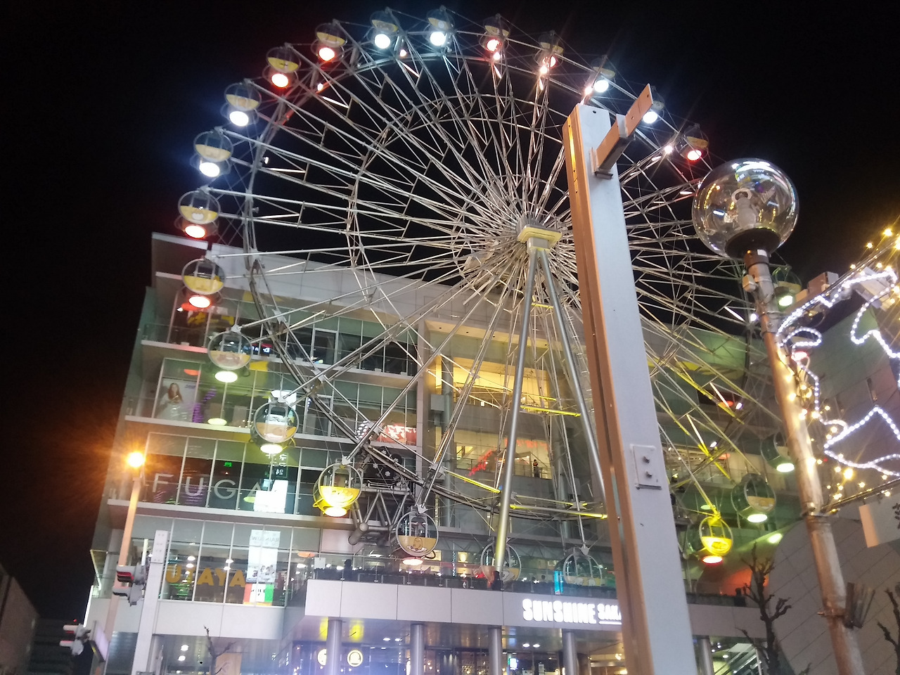짐을 풀고 사카에역 근처에 숙소를 잡았다. 정확히 이야기하면 한 정거장 떨어진 신사카에역이였다. 사카에역은 나고야 지하철 노선으로 봤을때 정확히 중심에 위치하며 에펠탑 같은 커다란 TV Tower가 서있다. 엘리베이터를 타고 이 타워 위를 올라갈 수 있는데 엘리베이터 안의 스릴감과 위에서 내려다보는 나고야 시내가 장관이였다. 그리고 밑에서 내려다보면 두번째 그림같이 오아시스21이라는 건물도 특이하게 지어진 건축물이있다. 건물 지붕에 있는 물이 오아시스와 같다고해서 붙여진 이름이란다. 21세기 도심안에 오아시스라는뜻인가? 저 멀리 관람차가 보인다. 어울리지 않는듯 어울리는 야경. 한국에서 볼 수 없는 야경. 이곳이 진짜 일본의 시작이였다.