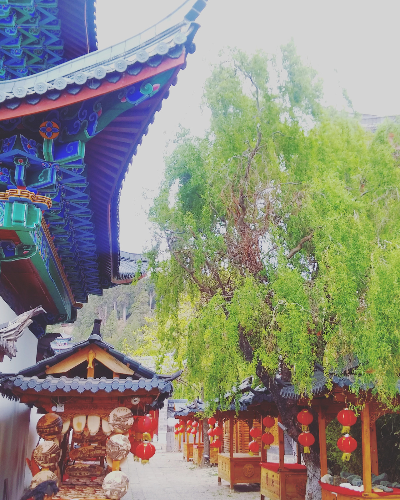고성 내부에 위치한 목부는 옜날에 왕이 살았던 궁이라고 하나. 고성안에 하나의 성이라고 볼 수 있다. 아쉽게 예산 부족으로 들어가보진 못한게 후회가되는 장소중 하나다. 파란색으로 칠해진 궁과 붉은 홍등 그리고 곳곳에 드리워진 기울어진 녹색 나뭇잎 그리고 하늘의 하늘색이 조화를 이룬다.