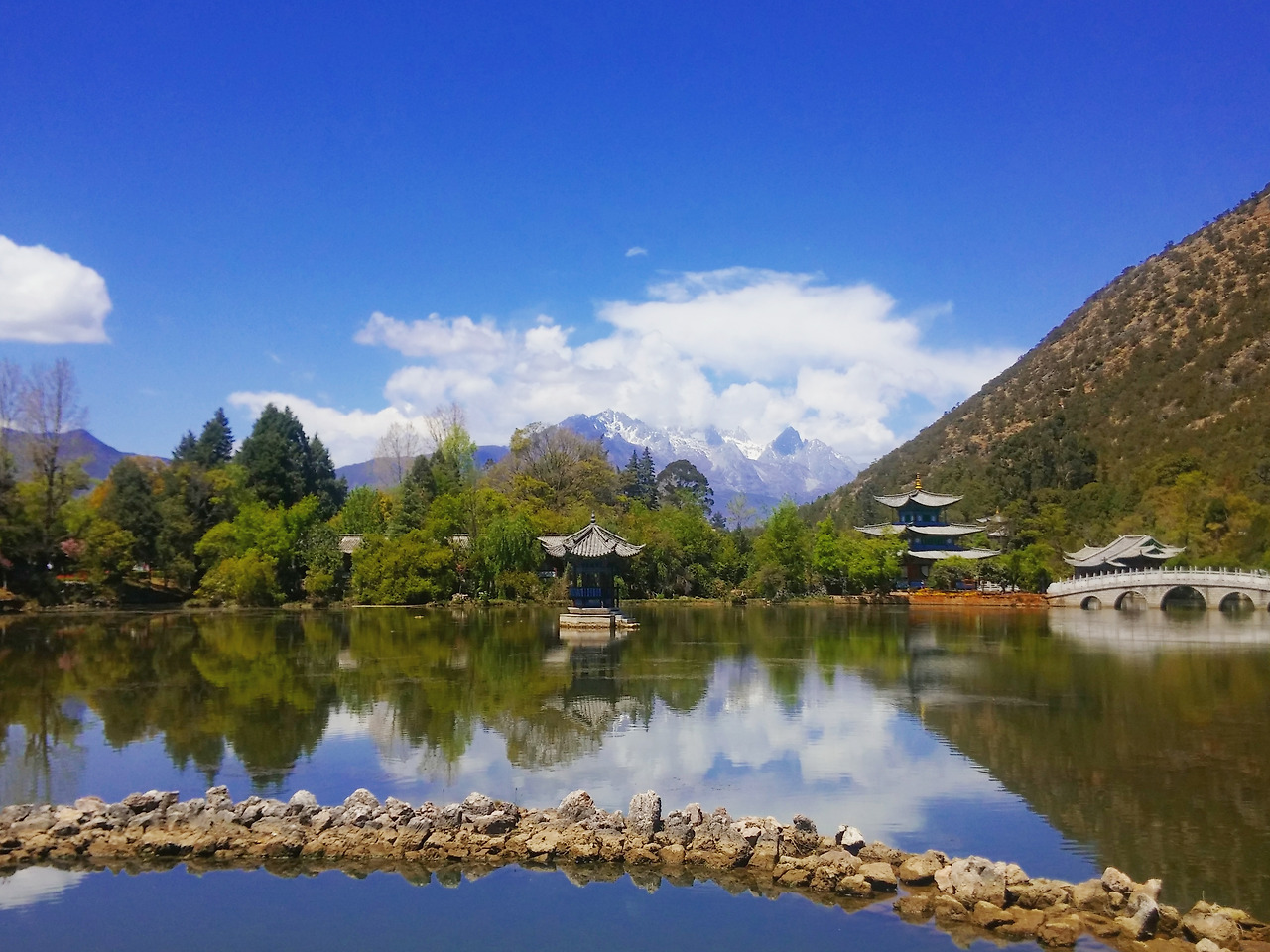gpro2로 아무렇게 찍었는데 폰에 담긴 사진은 아무렇지 않으니 신기할 노릇이다. 리장고성에서 걸어서 10분거리 흑룡담공원. 어떻게 보면 고성과 연결되어있다고 볼 수 있다. 이곳의 매력은 호수와 공원과 저 멀리 눈으로 덮힌산 그위에 걸쳐진 구름이 한폭의 그림을 보는듯 하다는거다. 이렇게 운남은 한번 더 자연의 아름다움을 증명해준다. 그러다 갑작스레 중국에서 신청한 전공수업의 중국인 친구가 리장산다며 운남 여행하는 걸 좋아하던일이 떠오른다. 그리고 때마침 연락이 왔고 '나 지금 여기있어' 라고 얘기해준다. 물어보진 않았지만 방학때마다 집에 돌아와 이 경치를 본다면 이 친구는 어떤 느낌일까. 아무렇지도 않을까. 그렇겠지. 이미 수백 수천번 봤을꺼니까. 그렇다면 나는 충분히 내주변의 아름다움을 감상하고 있을까. 주구장창 보는 우리 집앞 경치부터 그냥 지나치는 간판, 건물도 외국인이 본다면 과연 어떤 기분일까.