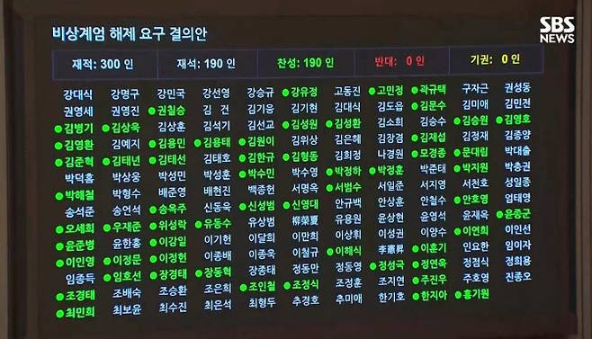 비상계엄 해제 요구 결의안 재석190명 모두 찬성