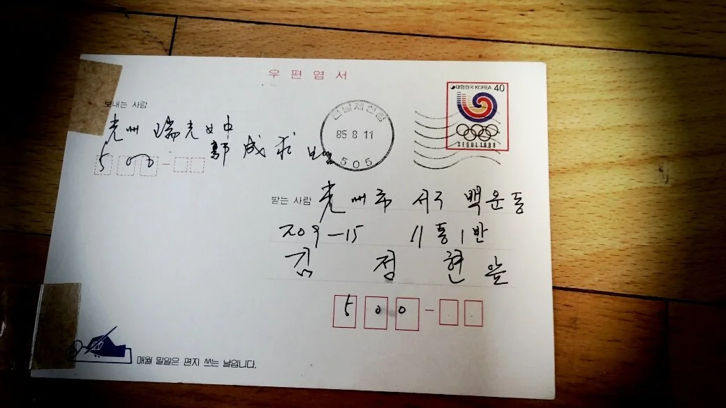 우연히 발견한 중3때 담임 선생님께 받았던 답장 엽서가 일기장 속에 매달려 있다.