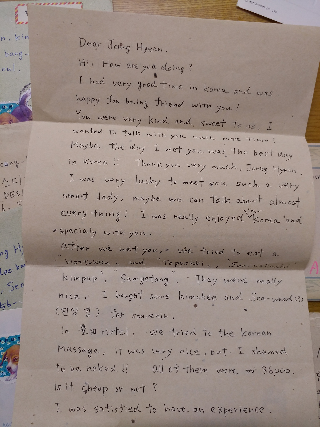반가운 마음과 그녀의 손편지에 정성이 묻어난다.