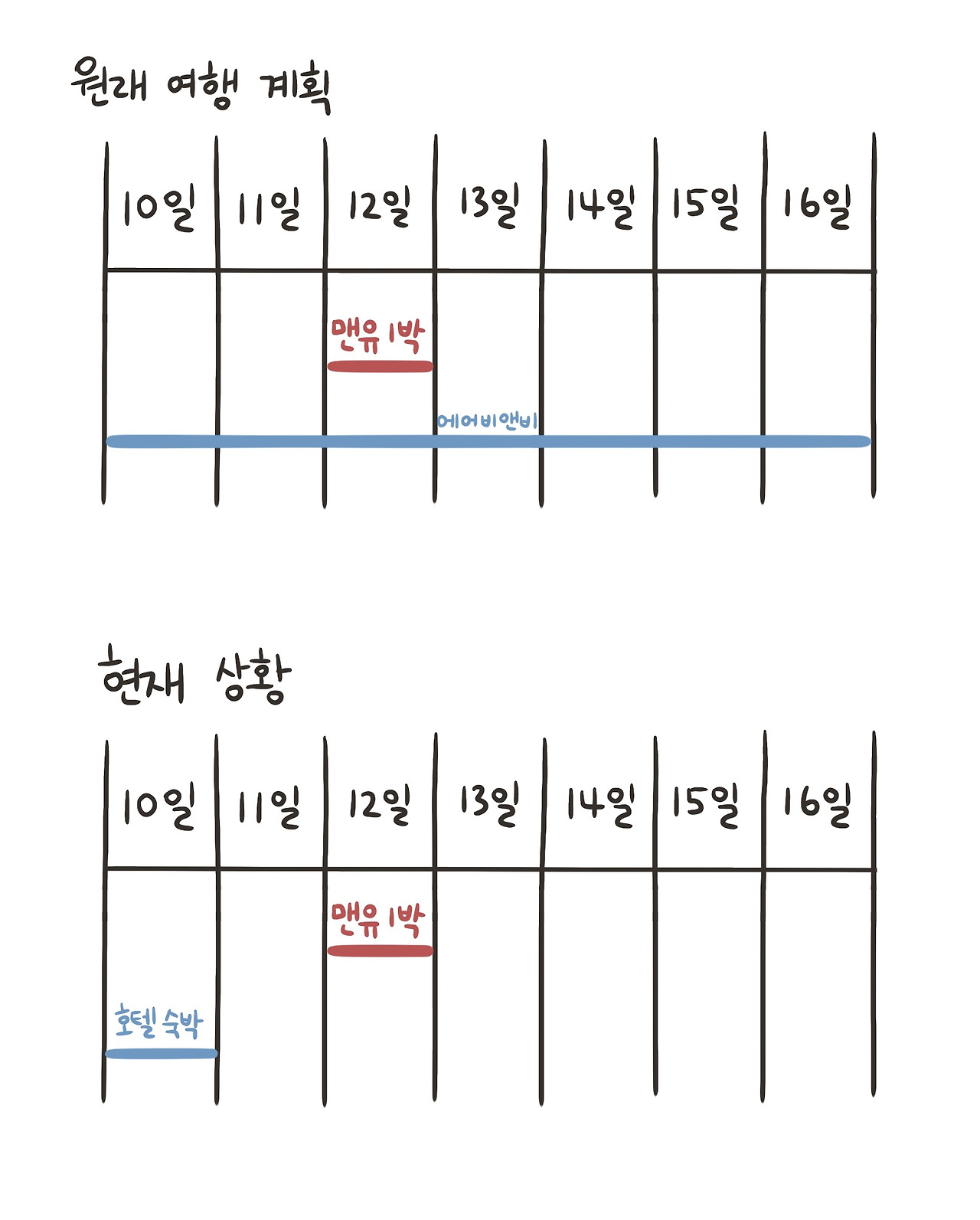 신랑 말대로 이미 호텔에서 하루 묵어버린 상황에서 굳이 11일부터 16일까지의 숙소를 잡을 필요는 없어 보였다. 그리고 당일 체크인 가능한 에어비앤비 찾기도 하늘의 별 따기였다. 게다가 이미 숙소로 고생을 한 터라 숙소 예약에 신중을 기하고 싶었다.