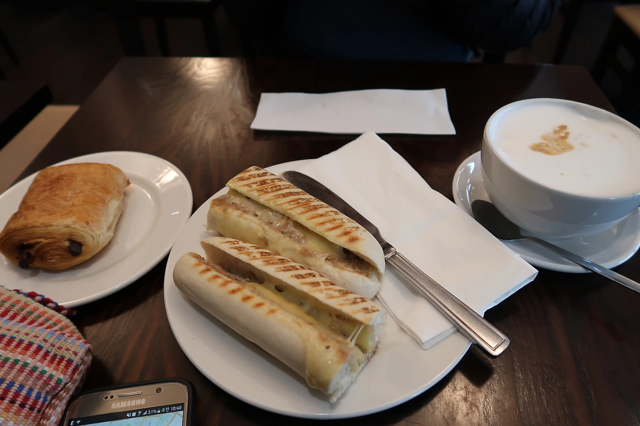 빵을 우걱우걱 씹으며 전투력을 상승시켰다. 어젯밤 우리가 그렇게 애타게 두드리던 숙소 문 옆에는 에어비앤비 사무소 같은 것이 있었다. 어둑어둑하고 비가 내리고 있었지만 똑똑히 보았다. '저 사무실이 우리 숙소를 관리하는 곳일지도 몰라.'라고 기억에 새겨 두었으니까. 아침을 든든히 챙겨 먹은 우리는 다시 우리가 예약한 숙소로 향했다. 여전히 문은 굳게 잠겨 있었다. 하지만 옆 사무실에는 직원이 출근해 있었다.