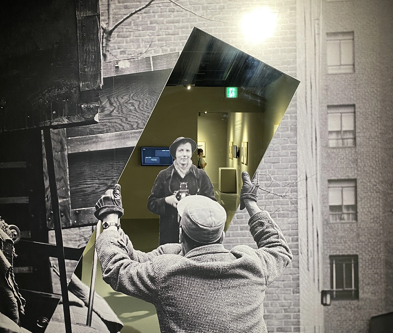 카메라에 대한 지식이 없는 감상자는 독일제 2안 렌즈 카메라의 뷰파인더가 어떻게 생긴 줄 모른다. 마이어가 사진을 찍기 위해 시선을 아래로 향했다고 자세히 서술한들 어떤 방식으로 사진을 찍는지, 상이 어떻게 맺히는지 알 수 없다. 설명을 읽을수록 답답할 즈음, 롤라이플렉스의 뷰파인더를 직접 볼 수 있는 공간이 나왔다. 양쪽에 동그란 거울을 두고 가운데 카메라가 있었는데, 이러한 구도 역시 비비안 마이어가 자신의 셀피를 찍기 위해 구성했던 것이었다. 그녀의 사진 속 공간에 자리한 롤라이플렉스는 더없이 매력적이었다.