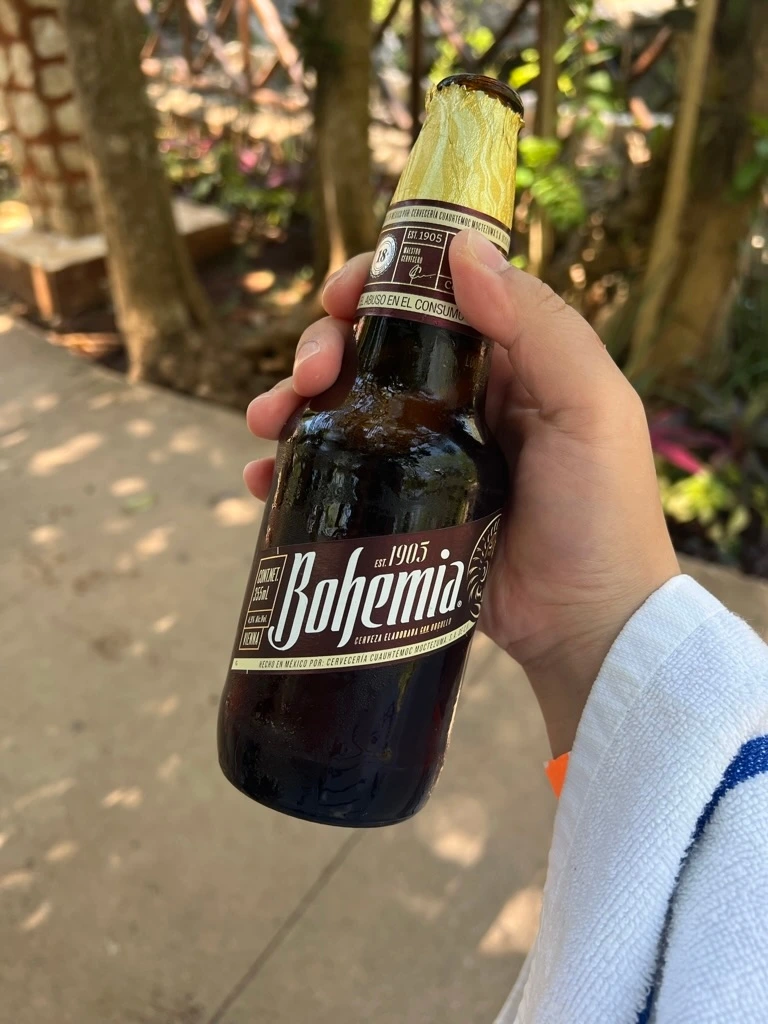 점심을 먹고 2번째 세노테인 사말 세노테로 들어갔다. 사말 세노테는 옥스만보다 규모는 크고 예쁘긴 했으나, 가격도 비싸고(150~200페소) 물이 차가웠고 필수로 입어야 하는 구명조끼가 자꾸 내 목을 찔러서 수영하기 불편했다(어쩐지 림버트가 세노테 우리가 세노테 입장하는 것만 도와주고 자기는 안 들어가더라). 우리는 한 20분 정도 수영하다가 근처에서 맥주를 마시며 쉬기로 했다. 알고 보니 스페인어를 잘하는 친구는 이전에 멕시코에서 교환학생을 했었고, 우리에게 맛있는 맥주를 추천해 주었다. 내가 먹은 맥주는 Bohemia의 흑맥주로 맥주맛을 모르는 나의 입맛에도 맞았다.
