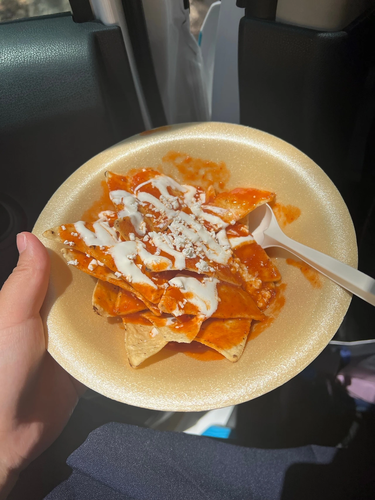 그렇게 우리는 옥스만 세노테에 1시간가량 있었고, 다음 세노테인 사말(Saamal) 세노테로 이동해 점심부터 먹었다. 우리는 햇빛이 너무 뜨거워 택시 뒷좌석에서 식은 피자와 빵을 먹고 있었는데, 갑자기 림버트가 칠라킬레스(chilaquiles, 살사 소스에 또르띠야를 버무린 음식으로 아침식사로 자주 먹는다)를 나눠주는 것 아닌가. 아내분이 우리 몫까지 챙겨 온 것임을 알고 우리는 감동했고, 림버트가 몇 가지 마야어와 멕시코 욕을 알려주며 점심식사를 보냈다.