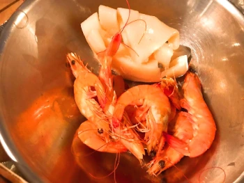 준비하면서 틈나면서 찍은 사진이라곤 튀김 가루를 무치기 전 새우와 오징어, 그리고 잡채를 만들기 전 삶아 놓은 당면 ...