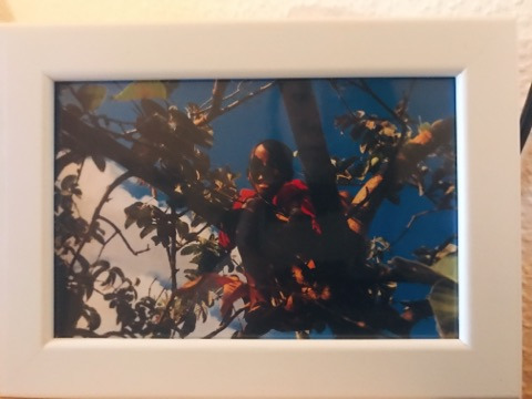 액자에는 이전에 선별해서 엽서로 만들었던 직접 찍은 사진들 중에서 말라위에서 나무위에 올라간 소녀를 아래에서 올려다보며 찍은 이 사진을 넣었다.