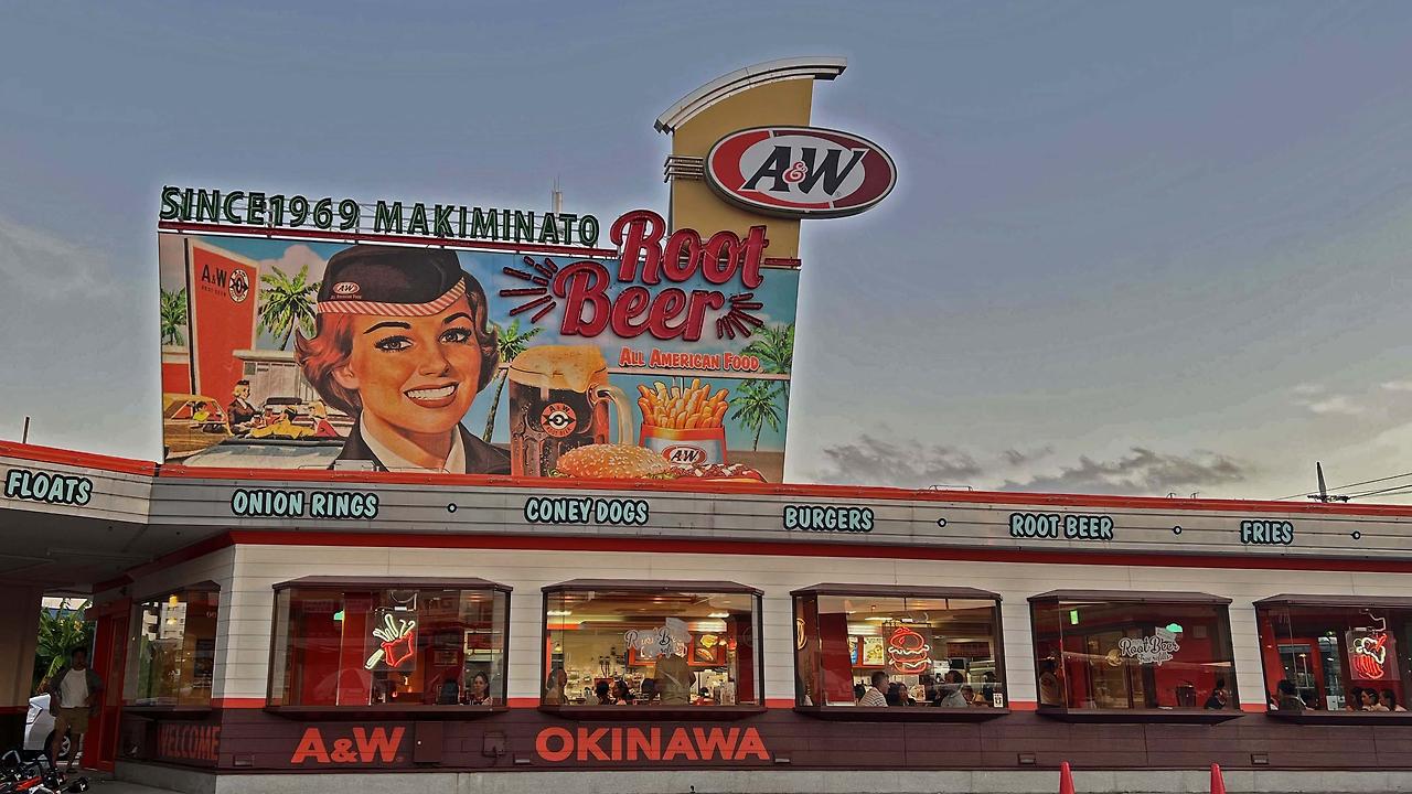 이날은 오키나와 여행 중 8번째 여행으로 그동안 오키나와여행 중 처음으로 오후 늦게 나하공항에 떨어진 날이었다. 비행기가 많이 딜레이가 되었던 날이었다. 렌터카를 받자마자 A&W 버거에 들려 루트비어와 햄버거를 먹으러 이동했다.