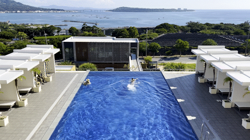그리고 여기 숙소의 하이라이트는 가장 위층에서 오키나와 바다를 보며 힐링할 수 있는 근사한 대욕장이 있다는 것이다. 냉탕이 없어서 조금 아쉬웠지만 여행 중에 피로 풀기에는 대욕장만한 게 없지 않은가! 나중에 나와서 남편과 나는 내부공간에 대해 공유하다가 남탕, 여탕에 각각 따로 있었지만 열탕에 앉아 이곳 뷰를 보며 '나중에 엄마랑 어머니 모시고 오면 좋겠다..'라는 같은 생각을 했더라. 이곳에 앉아 멋진 풍경을 보고 있자니 사우나, 목욕탕을 좋아하는 엄마 생각이 자연스럽게 났다.