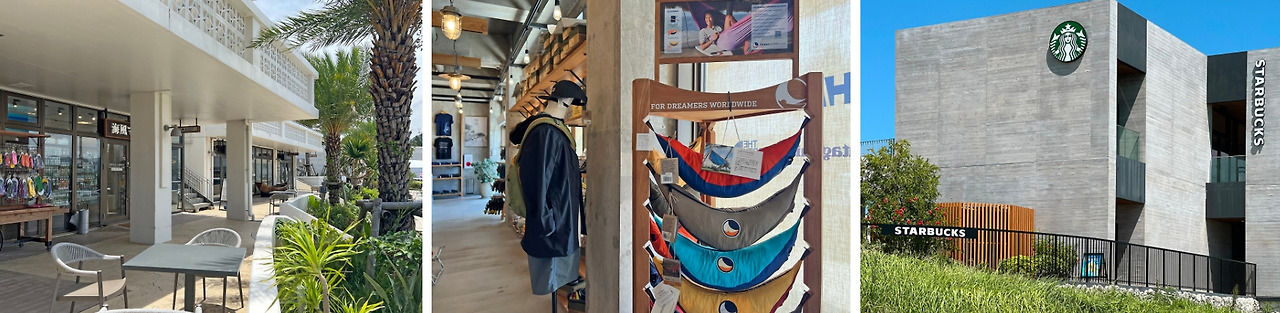 그리고 호텔 아래와 주변으로 쇼핑할 수 있는 곳들도 있어서 둘러보기 좋았다. 오키나와 로컬브랜드인 카이소우(kaisou) 매장으로 들어가면 발리에서만 볼 수 있다는 티켓투더문(Ticket to the moon) 제품들도 볼 수 있으니 둘러보시길! 아차차! 이 호텔 앞에는 스타벅스 드라이브스루도 있는데 매장 2층 통창뷰도 좋아서 꼭 이 숙소를 묵지 않아도 사람들이 많이들 들리는 곳이다.
