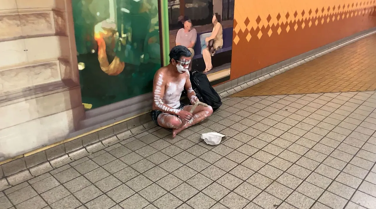 센트럴역(Central Station) 지하이동 통로에서 공연하는 어보리진. ©Jian