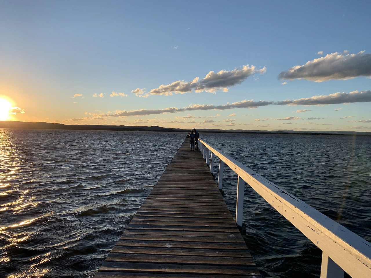 관광지 이름은 '롱 제티(Long Jetty)'. 우유에 타먹는 코코아가루가 문득 떠오르는 이곳은, 사실 넓은 호수(정확히는 바닷물이 만 안쪽에 갇혀서 생긴 호수이다. 강릉의 경포호와 비슷한데 크기가 훨씬 크다)에 설치된 길고 좁은 나무 데크가 유명한 관광지이다.