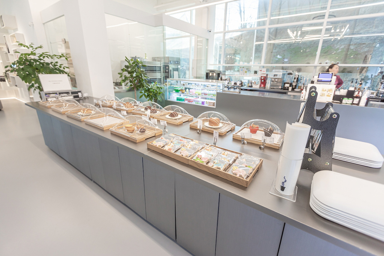 카페로 들어서면 맞은편에 있는 커다란 통창으로 햇빛이 밝게 들어와 카페 내부를 더욱 환하게 비추어 준다. 카페에 들어서면서부터 깔끔하고 모던한 내부 모습에