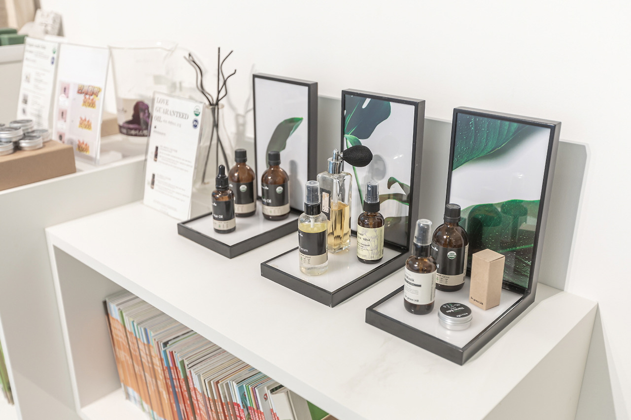 카페 한편에는 Dr Grace Lab의 향과 관련된 다양한 제품들도 만날 수 있다.