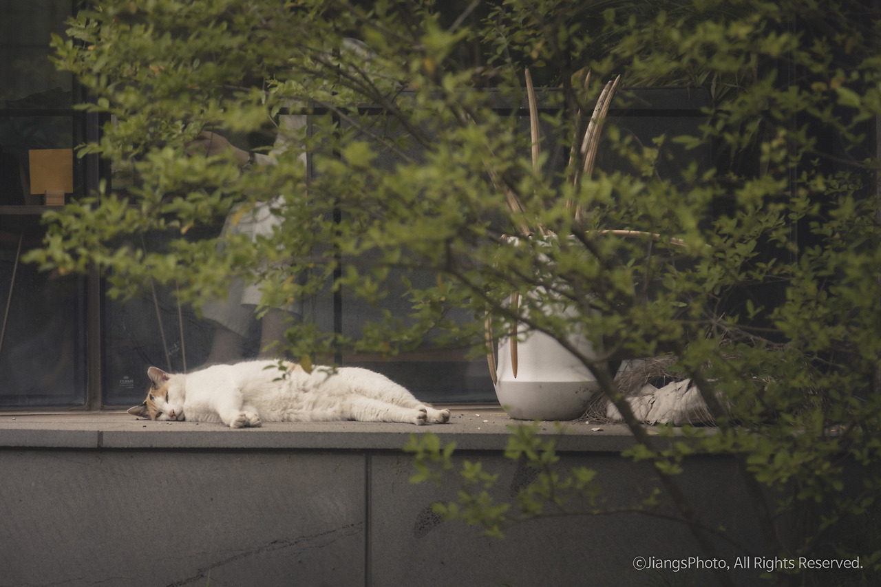 조용한 카페거리의 분위기를 대변이라도 하듯 고양이 한 마리가 한낮에 무료하게 늘어지게 누워있다.