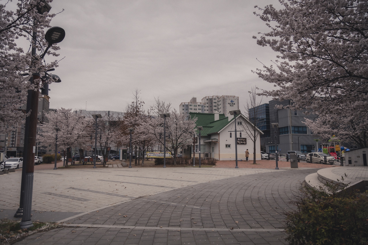 벚꽃이 여기저기 피어있는 3월에 기찻길 모습만 간신히 유지하고 있는 철길 옆에