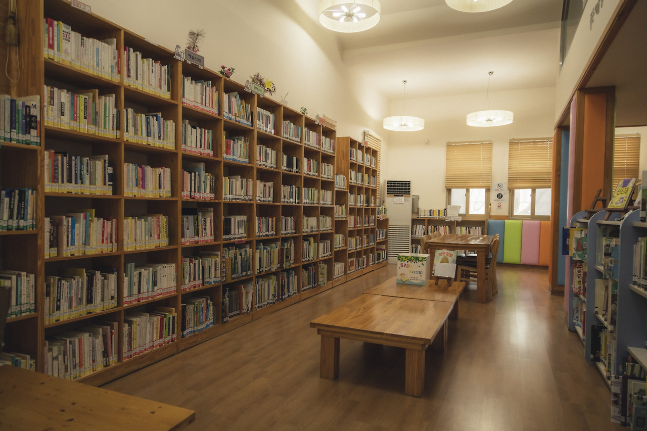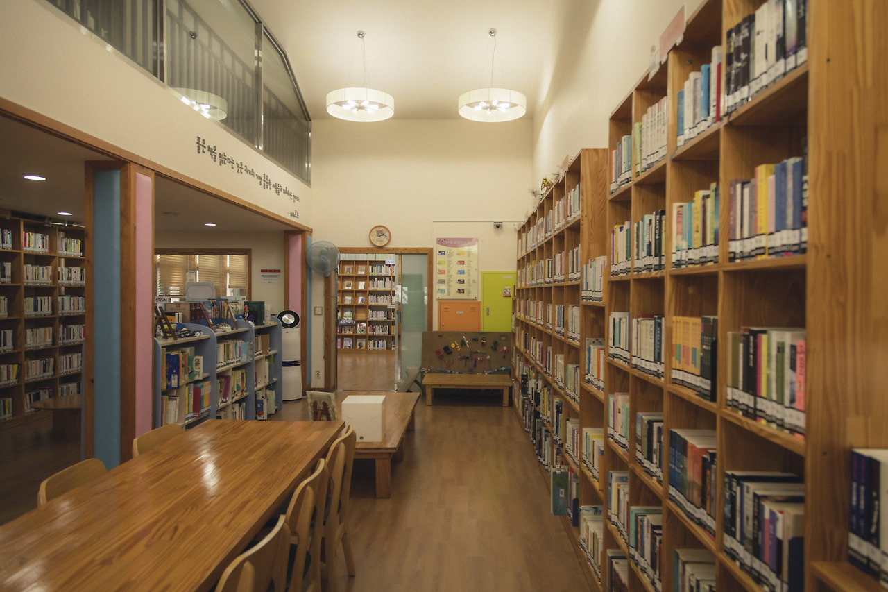 도서관 내부는 아이들 도서관처럼 아기자기하게 꾸며져 있고 1층과 2층으로 되어 있다.