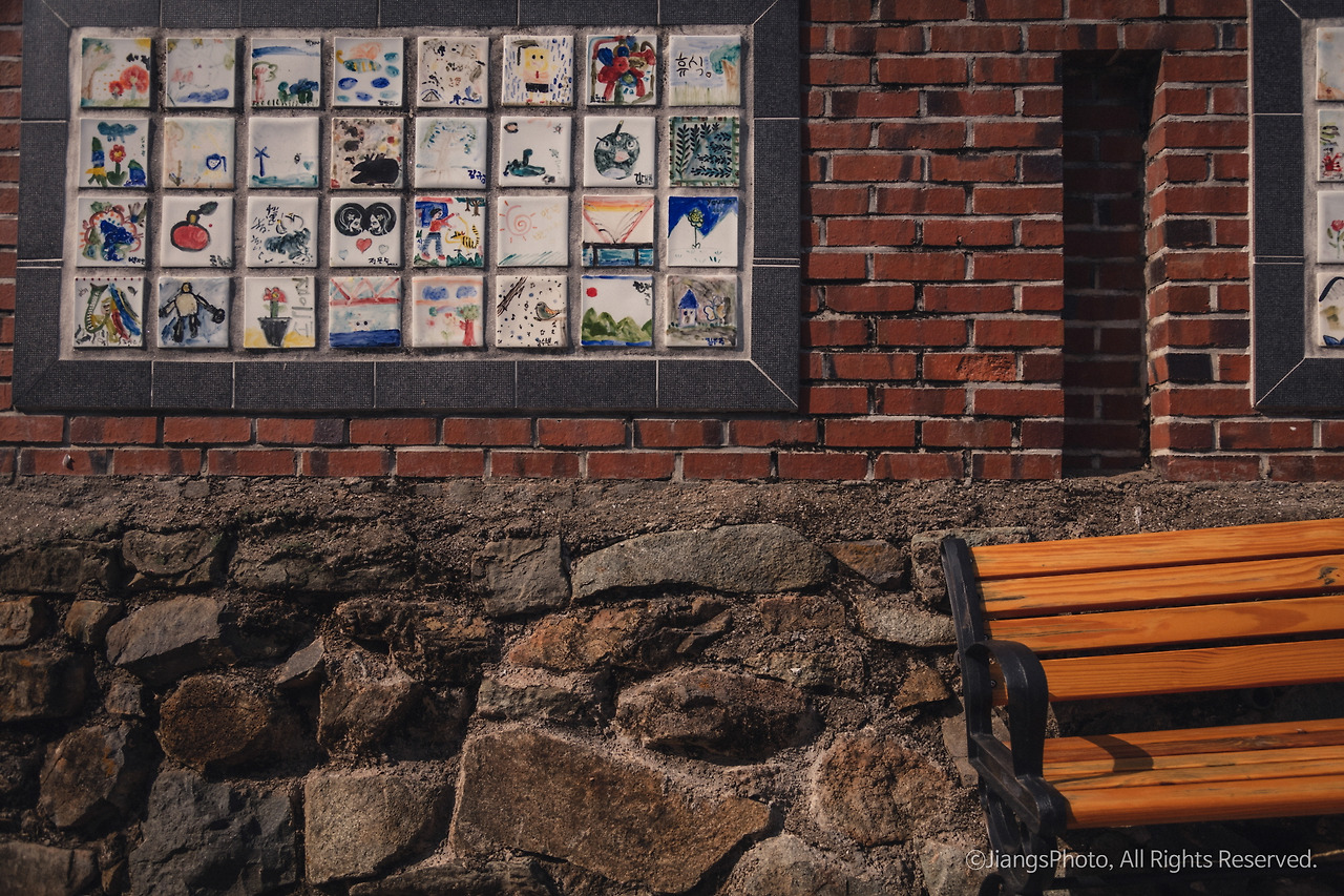 70~80년대의 골목길과 어린아이들이 아기자기하게 타일에 그린