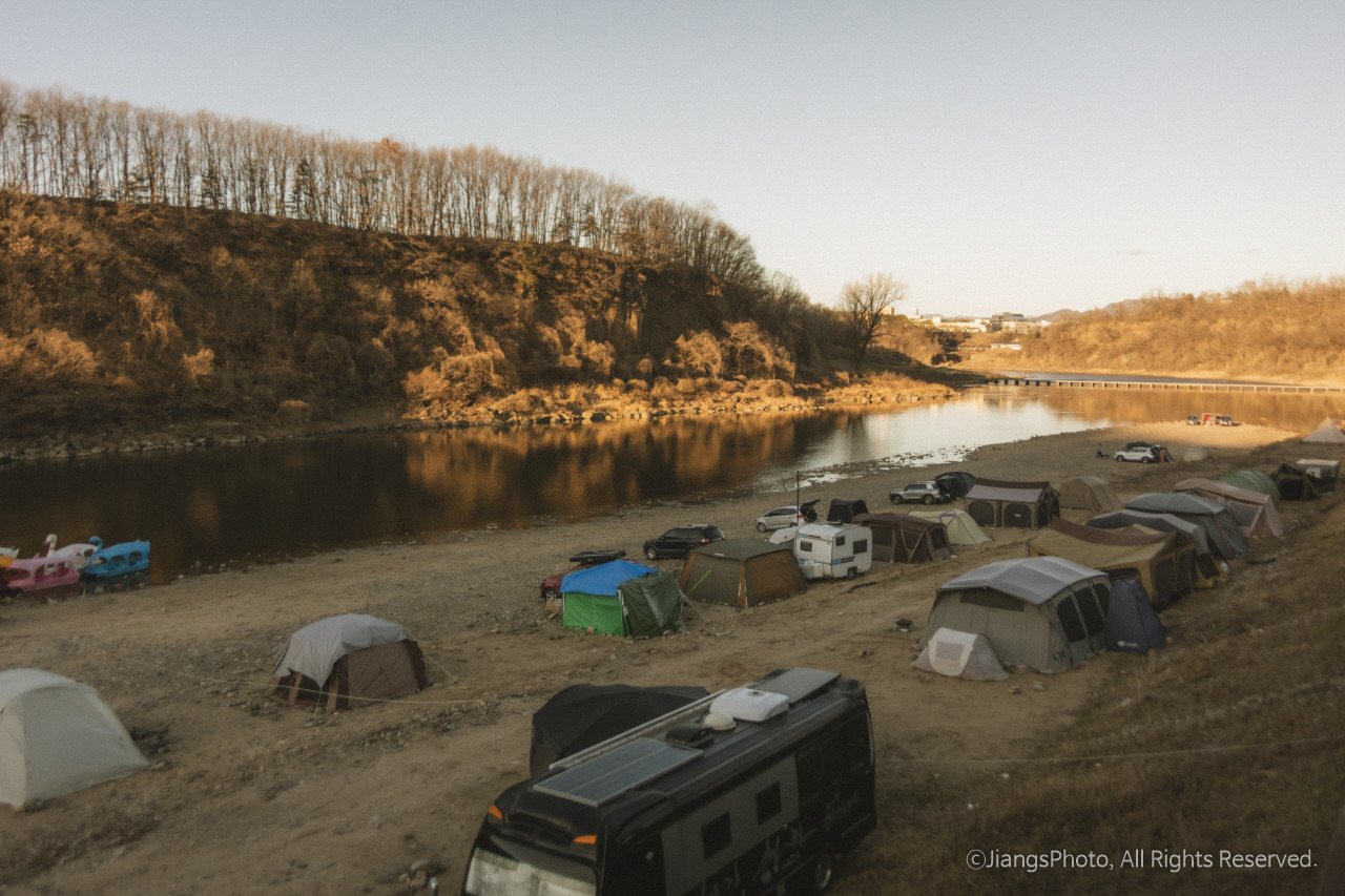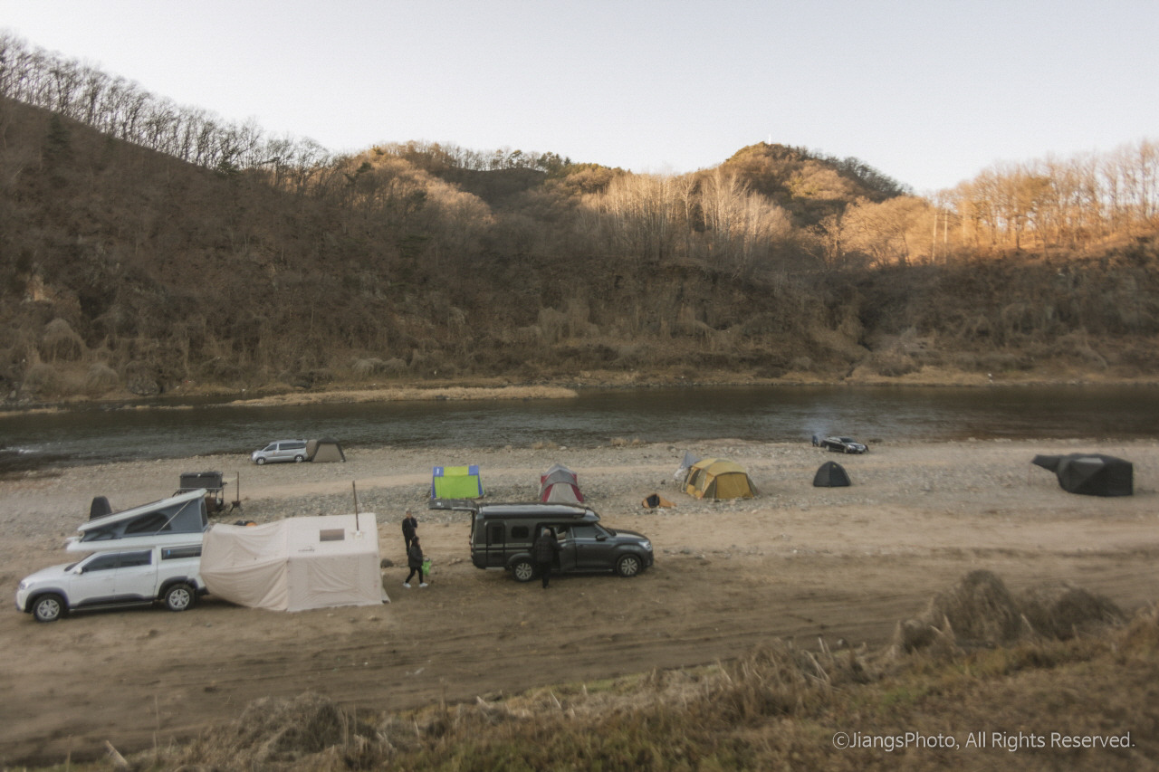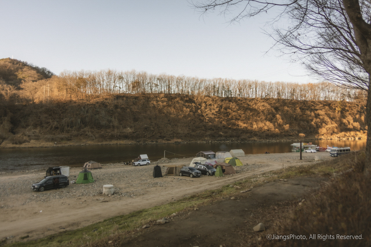 그중 한 곳이 한탄강 둔치에 있는 무료 노지 캠핑, 차박지이다. 무료이지만 개수대만 없고 공용화장실이나 쓰레기 분리 수거장, 간이매점이 있을 정도로 나름 있을 것은 다 있다. 매점에서는 참나무장작, 아메리카노, 폭죽, 김치, 고구마 등을 구입할 수 있고 파라솔도 렌트할 수도 있다. 심지어 오리배까지 즐길 수 있다. 또한 한탄강 둔치에 있다 보니 유유히 흐르는 한탄강과 높은 산들을 바로 눈앞에서 즐길 수 있어 자연 속 캠핑 분위기를 제대로 즐길 수 있기까지 하다. 견지낚시까지 가능하니 낚시를 좋아하시는 분이라면 더더욱 좋은 곳이다.