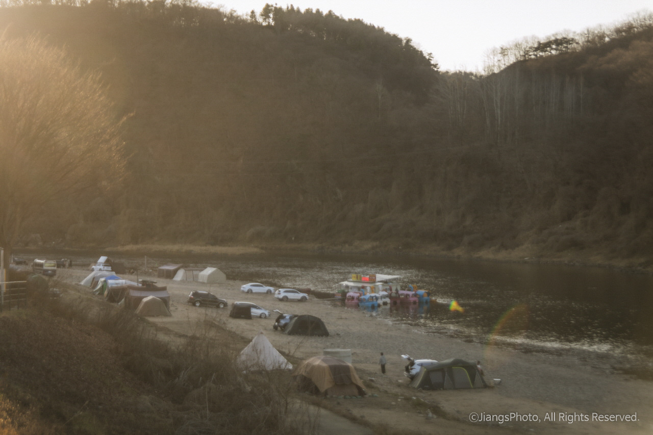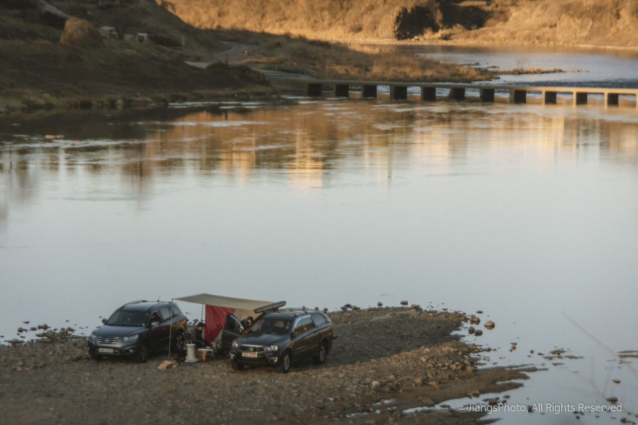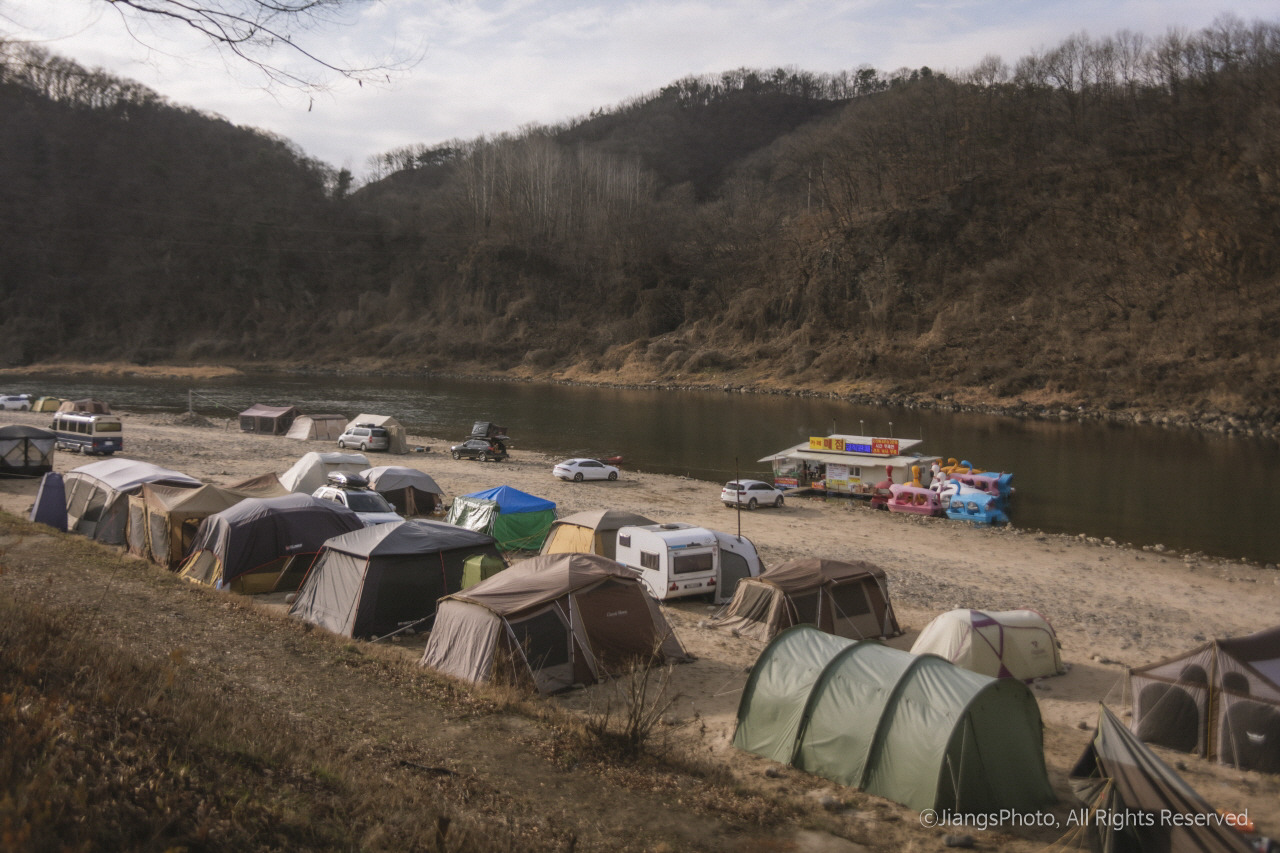 그중 한 곳이 한탄강 둔치에 있는 무료 노지 캠핑, 차박지이다. 무료이지만 개수대만 없고 공용화장실이나 쓰레기 분리 수거장, 간이매점이 있을 정도로 나름 있을 것은 다 있다. 매점에서는 참나무장작, 아메리카노, 폭죽, 김치, 고구마 등을 구입할 수 있고 파라솔도 렌트할 수도 있다. 심지어 오리배까지 즐길 수 있다. 또한 한탄강 둔치에 있다 보니 유유히 흐르는 한탄강과 높은 산들을 바로 눈앞에서 즐길 수 있어 자연 속 캠핑 분위기를 제대로 즐길 수 있기까지 하다. 견지낚시까지 가능하니 낚시를 좋아하시는 분이라면 더더욱 좋은 곳이다.