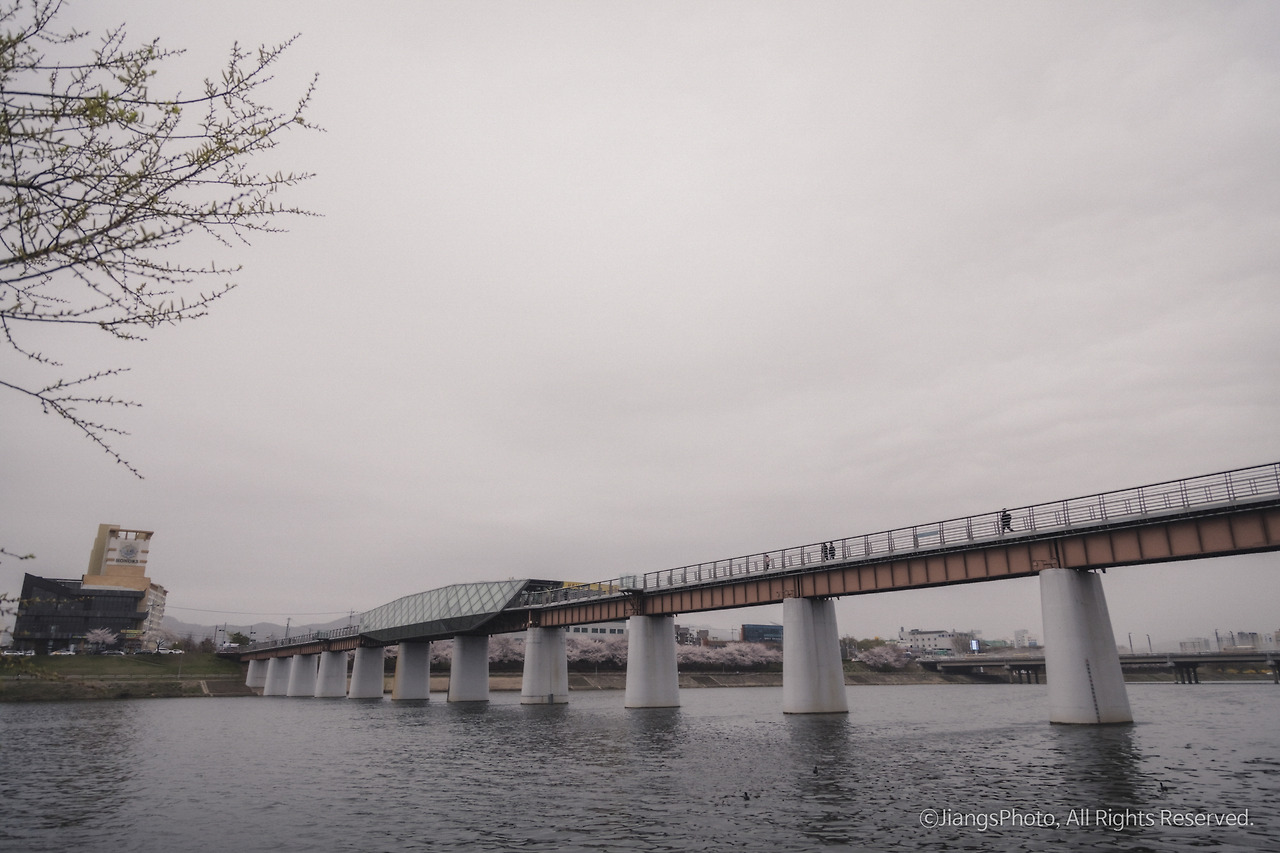 아양기찻길 주변으로는 아름다운 금호강과 함께 해맞이동산 공원, 해맞이다리,
