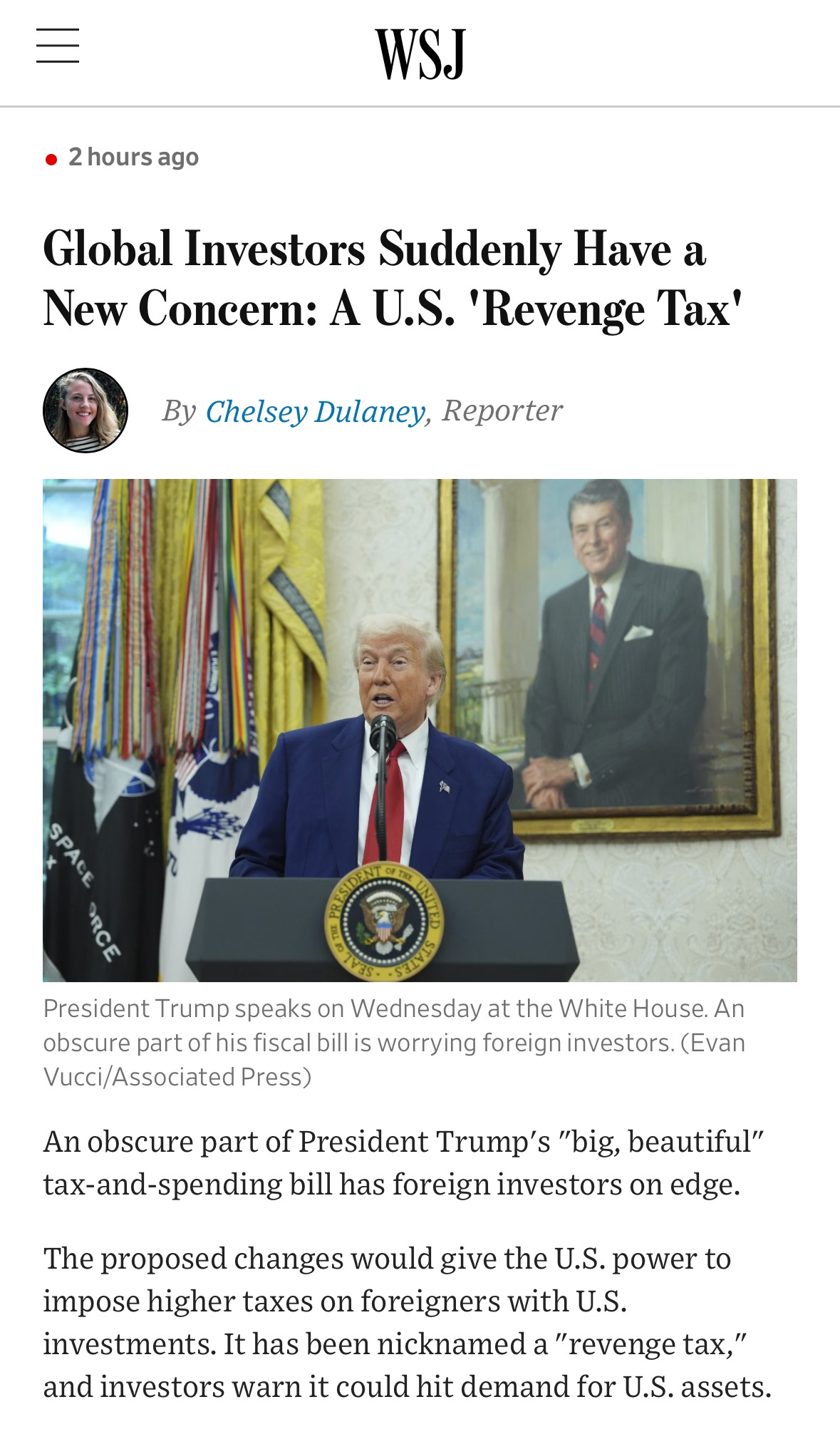 기사는 외국인이 미국 내 자산을 매각할 때 세금을 부과하겠다는 내용이었다. 국채, 주식, 부동산 모두 해당된다고 했다.