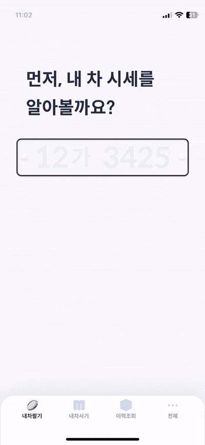 그런데 특이한 점은 하단 GNB를 보며 일일이 '내차 팔 기로 가야지' 또는 '이력조회 해야지'라는 의식적인 흐름이 아니라 동일한 UI인데도 '이건 이력조회' '이건 내차 팔기'를 무의식적으로 구분하고 있었어요.