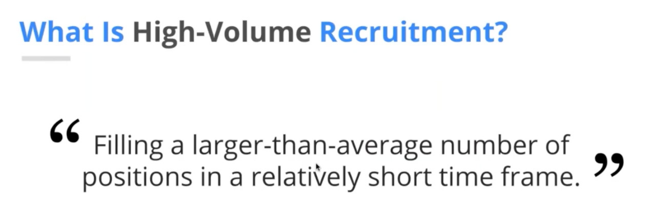 요약하자면, 단기간에 많은 근로자를 확 뽑아야 하는 형태의 고용을 High-Volume Hiring이라고 분류한다.