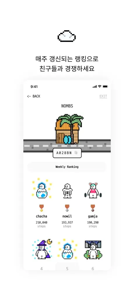 찰리와 걷기에서는 지인들과 공유할 수 있는 코드를 형성해서 닫힌 환경에서 리더보드 경쟁을 하게 된다.