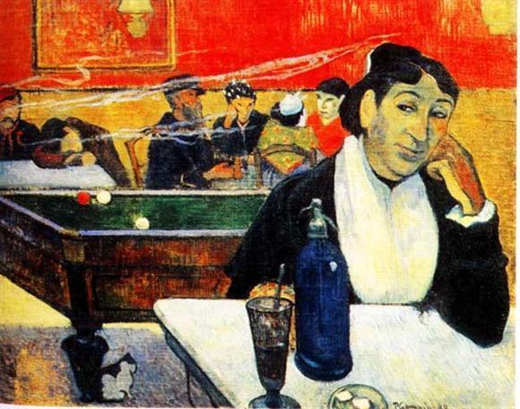 고흐가 압생트를 즐기기 위해 자주 찾았다는 아를 밤의 카페, 그리고 고흐의 절친한 친구로 알려져 있는 고갱이 그린 밤의 카페. 고갱의 그림 속 ‘지누 부인’은 압생트를 마시고 있다.