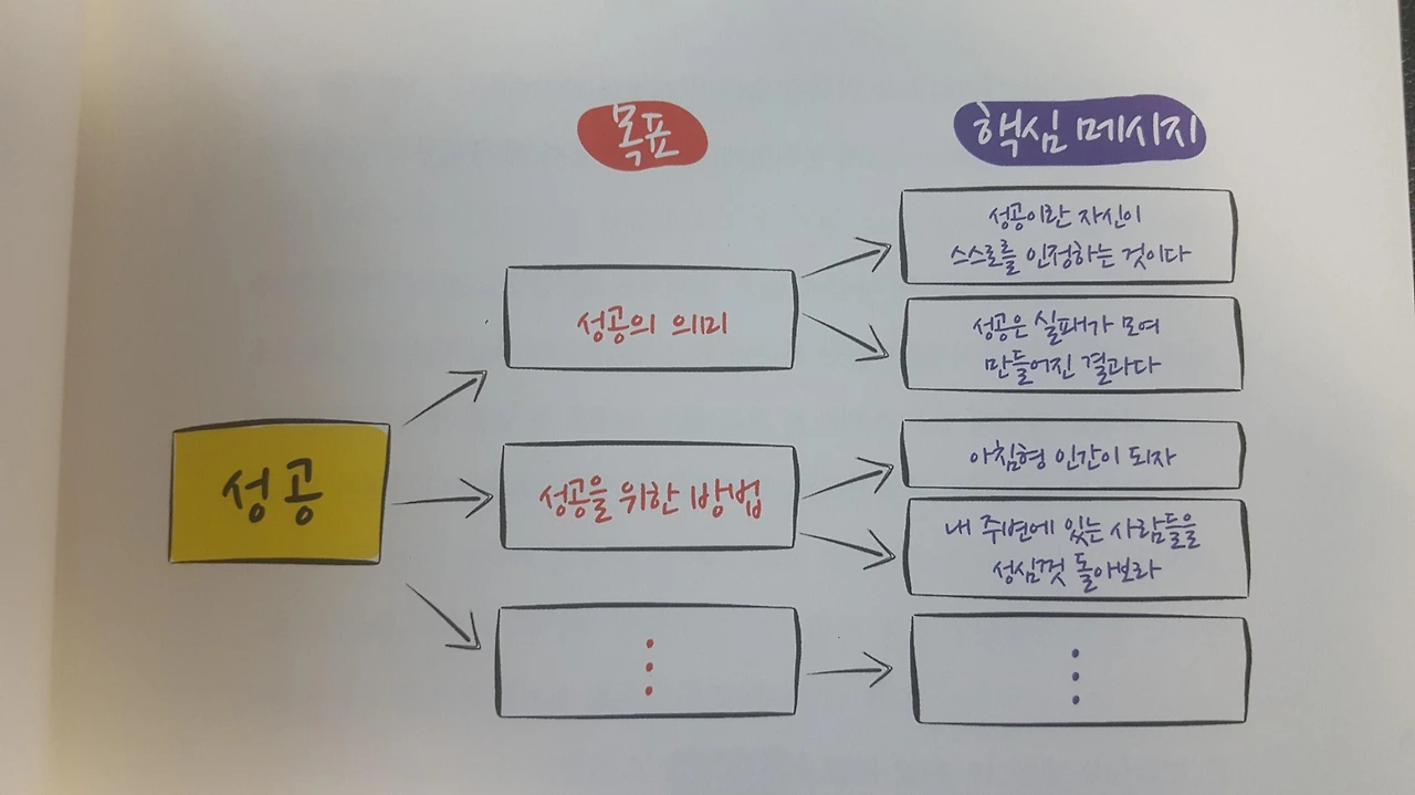 프레젠테이션을 스피치의 한 범주로 본다면, 스피치에서 얘기하는 핵심 키워드를 통한 내용 전개(위 사진 설명) 방법과 맥락이 같다. 한 편의 소설이 아닌 핵심 키워드를 탄탄하고 짜임새 있게 정리할 수 있다면, 어떤 상황에서도 길을 잃지 않고 앞으로 나아갈 수 있다.
