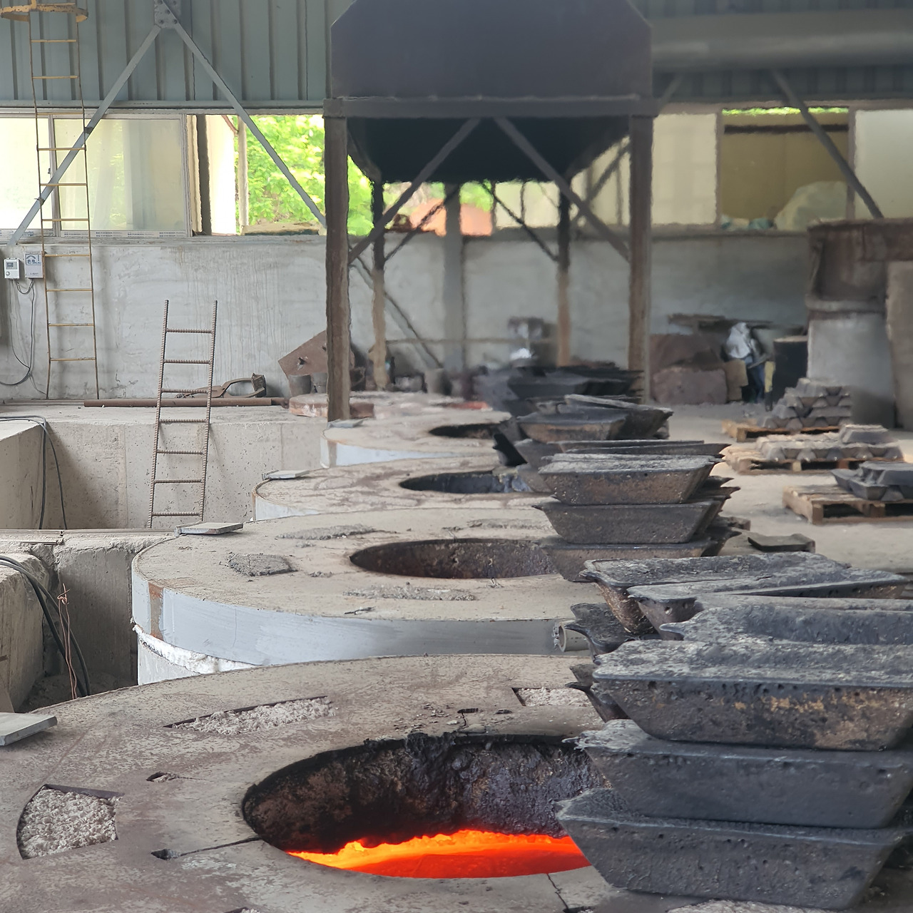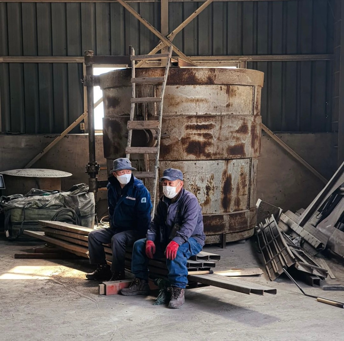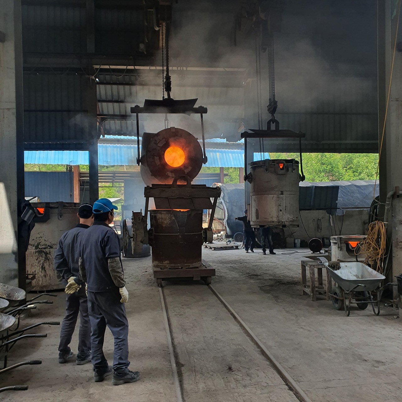 첫 작업은 용해로에 쇠를 녹이는 작업으로 시작한다. 1,000도가 넘는 온도, 가까이 다가가기 힘들 정도의 불길이 치솟는다. 어느 정도 쇳물이 녹으면 위에 뜬 불순물을 걸러내 순수한 쇳물에 가깝게 한다.