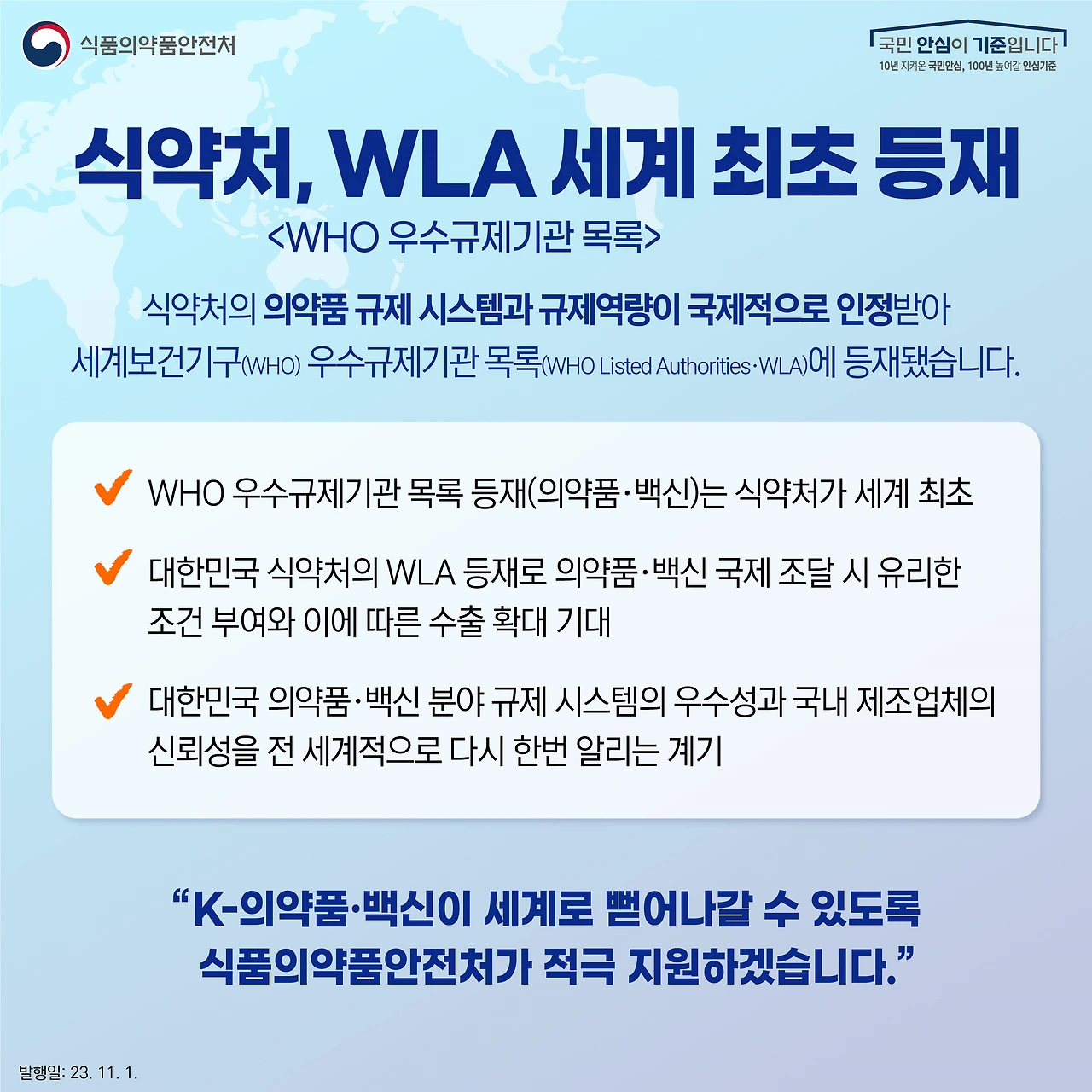 나는 식약처 재직 시절 이 작업에 직접 참여하지는 않았지만 동료들이 몇 년에 걸쳐 준비하고 직접 실사 받으면서 애썼다는 사실을 잘 알고 있다. 그래서 매우 기뻤고 속으로 박수를 쳤다.
