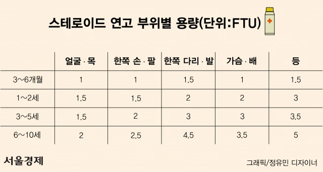 부위별로, 나이별로 사용하는 스테로이드 연고 양이 FTU로 정해져 있어. (출처=서울경제)