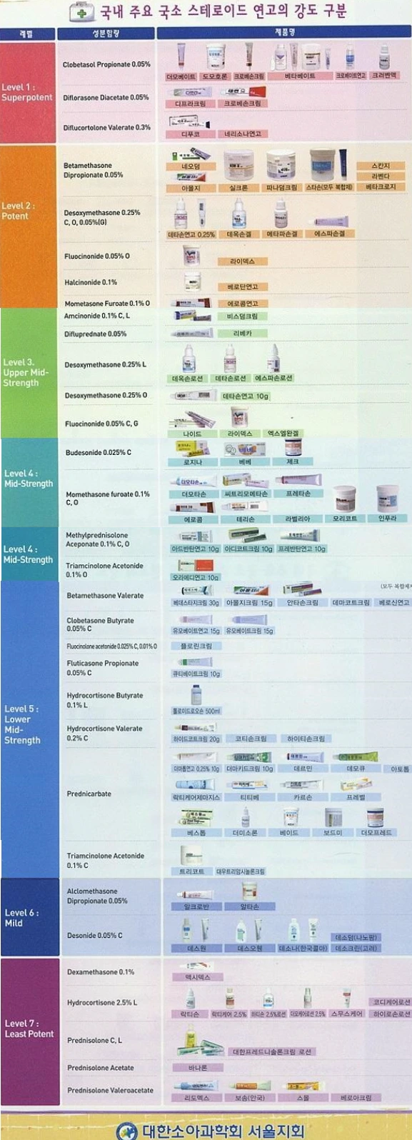 스테로이드 연고는 강도와 제형에 따라 7단계로 분류돼 있지.(출처=대한소아과학회)