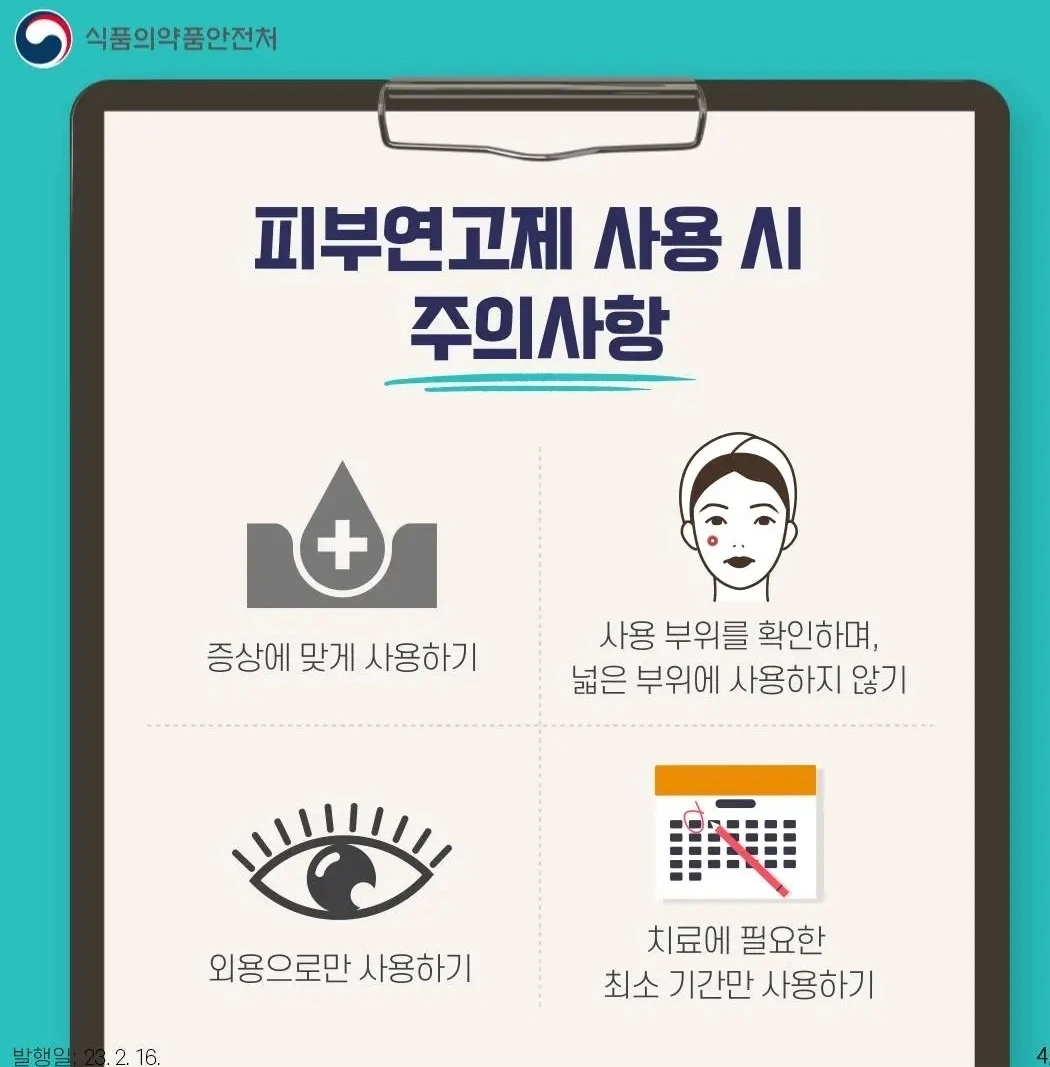 피부 연고제를 사용할 때도 지켜야 할 사항이 있어. (출처=식품의약품안전처 페이스북 페이지)
