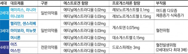 경구피임약은 성분 종류에 따라 세대가 구분된다. 각 세대별로 용도와 부작용이 다르지. (출처=헬스경향)