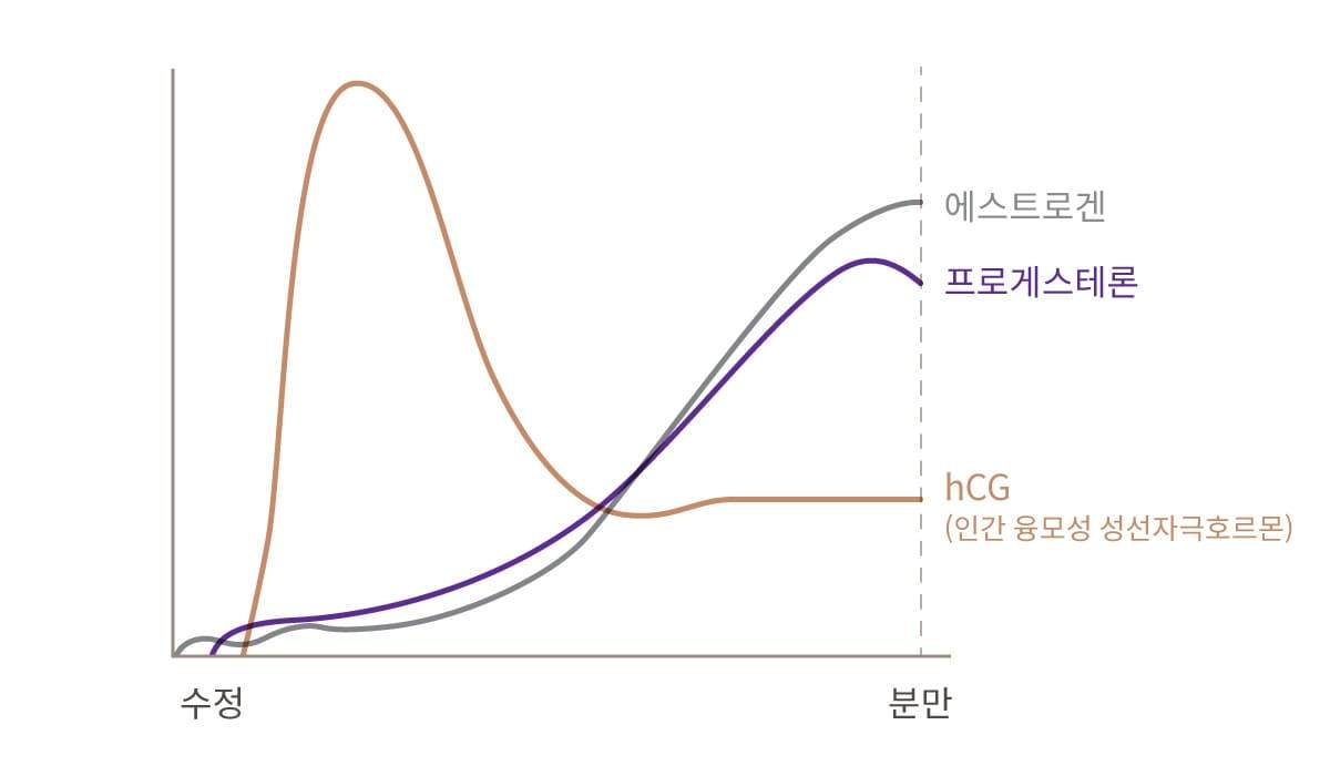 임신 중의 호르몬 변화. 에스트로겐과 프로게스테론 농도가 점점 높아지는 게 보이지? (출처=해피문데이)