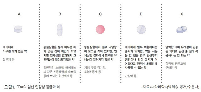FDA에서 분류하는 임부 안전성 등급은 A부터 X까지 다섯 가지로 나뉘는데, 독실아민+피리독신 복합제는 '분류 A'에 해당해. (출처=헬스조선)