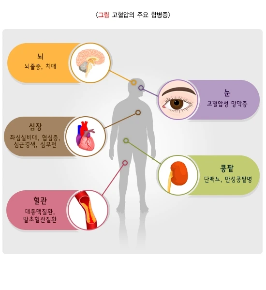 고혈압은 높은 혈압 자체보다도 혈관과 관련된 합병증이 더 무서운 병이야. (출처=국가질병정보포털)