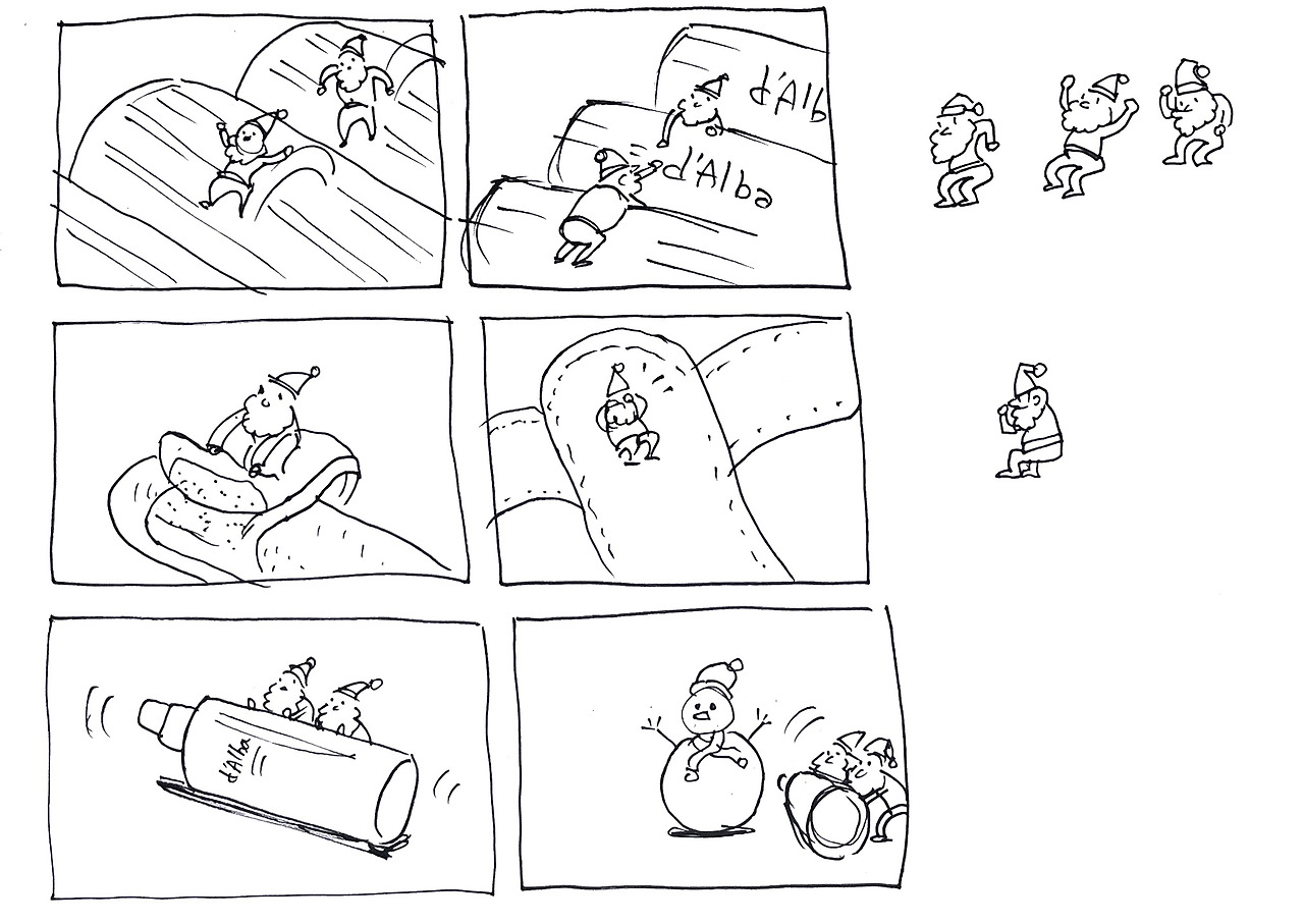 이번 컨셉은 아주 작고 귀여운 노란 산타요정들의 이야기다. 뽀작뽀작하고 앙증맞은 영상을 만들고자 해서