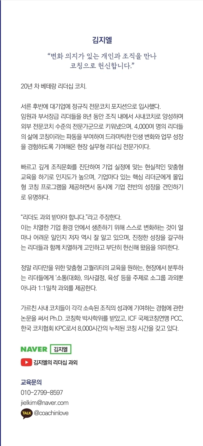 [인간관계, 소통, 사랑, 진정성 연구] 자발적인 변화의지가 있는 개인과 조직을 만나 코칭으로 헌신합니다