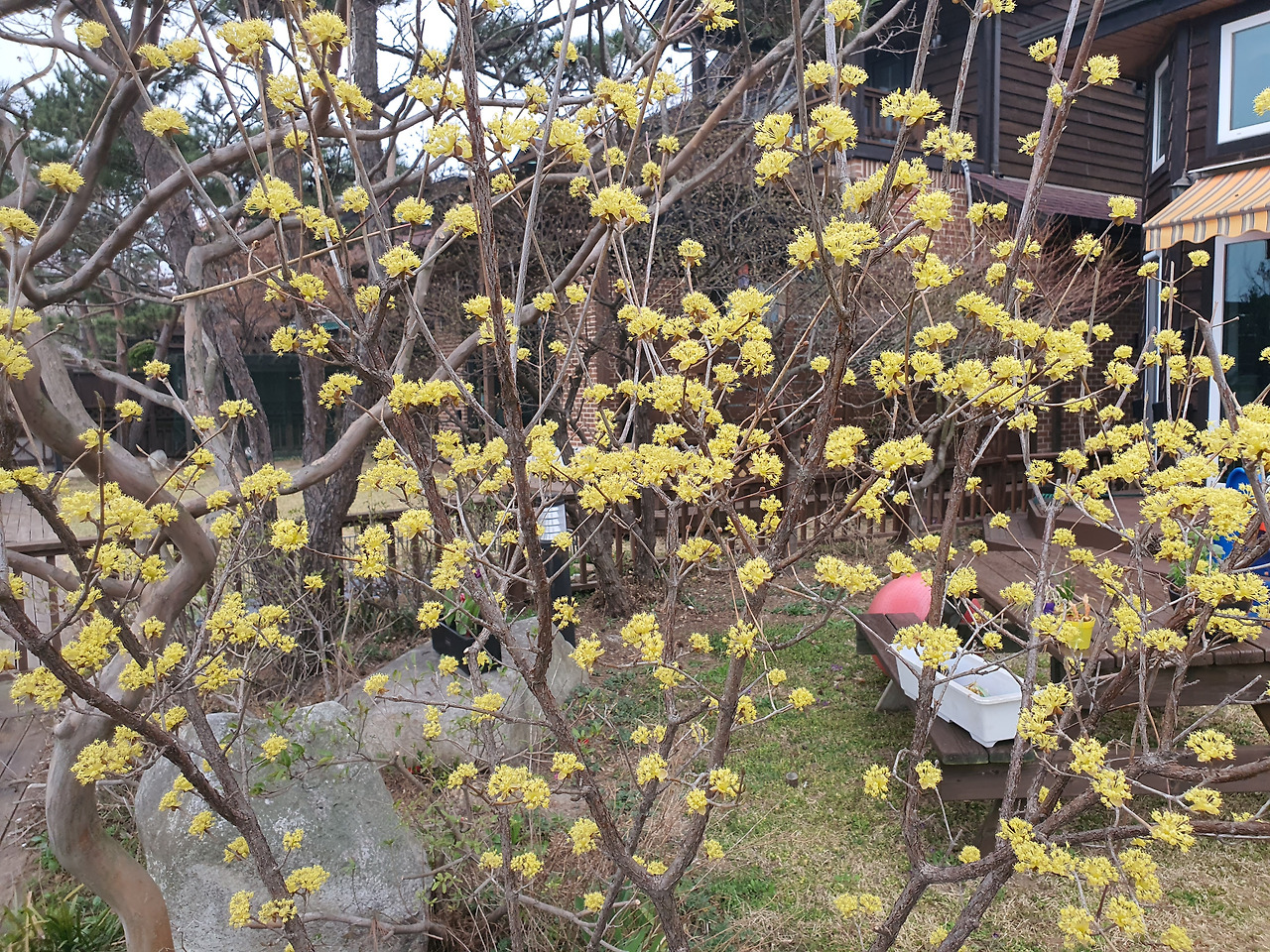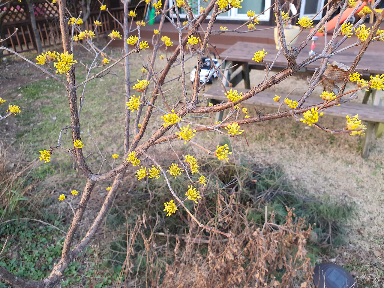 가장 먼저 산수유나무에 꽃이 피었습니다. 봉오리가 올라오는 것이 엊그제 같더니 이쁜 노란 꽃이 금방 올라왔습니다.