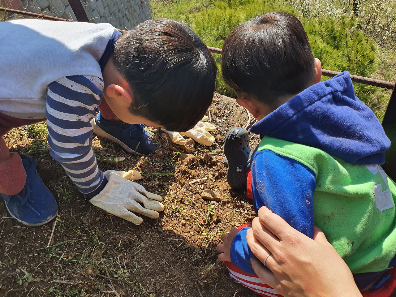 그리고 이사 오기 전부터 기대하고 있던 집 앞 텃밭도 시작했습니다. 마음은 3월 초부터 시작하고 싶어 인터넷 모종 가게들을 기웃기웃했는데, 아직은 봄이라고 하긴 추운지 모종들이 안 올라오더니, 지지난주부터 조금씩 올라오기 시작했습니다. 조금 더 따뜻해지길 기다리다 주중에 잔뜩 구입한 모종들은 주말에 맞춰 배송이 되어 이번 주 본격적으로 텃밭을 시작하였습니다. 겨우내 자란 잡초들을 뽑고, 흙을 뒤집어 준 후 모종들을 심었습니다. 초보 텃밭 생으로써 비닐, 비료 등을 준비를 못해서 아쉬움이 남았지만 아쉬운 대로 배송된 모종들을 텃밭에 심었습니다. 제가 준비한 모종은 상추, 시금치, 당근, 방울토마토 등 기본적인 텃밭 식물들로 준비를 하였습니다. 텃밭을 준비하니 아이들도 신이 났습니다. 같이 잡초를 뽑으며 하는 흙장난에 시간이 가는 줄 모릅니다. 도시에서만 살았던 저는 책에서만 보면 공벌레, 애벌레, 지네 등을 직접 보니 신기했습니다. 흙을 조금만 뒤집어도 돌만 들어내도 벌레들이 몇십 마리가 나옵니다. 벌레라곤 개미 정도밖에 못 만지던 제가 아이들의 호기심에 용기를 내어 하나 두 개씩 만졌더니 별것 아닌 것처럼 만져집니다. 조금의 용기는 필요하지만, 벌써 벌레들과 친해진 기분이 듭니다. 제가 자신 있게 만지는 모습을 보니 아이들도 신기한지 무서워하지 않습니다. 아들이 거미를 잡고 거미가 거미줄을 치는 것을 보니 살아있는 수업을 듣는 것과 같았습니다. 책에서만 보던 것을 직접 보니 신이 나는지 흙을 이곳저곳 파보며 곤충들을 더 찾아봅니다.