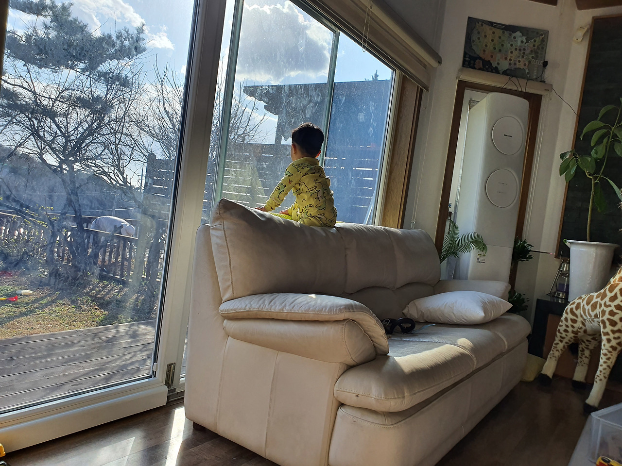 날씨가 따뜻해져 창고에 넣으려던 난방 텐트는 홈 캠핑용 텐트로 이용하고 있습니다. 난방 텐트 하나만 펴주어도 애들은 캠핑 왔다고 하며 즐거워합니다. 책을 읽어도, 장난감을 가지고 놀아도, 간식을 먹어도 집에서 먹는 것과 다른 즐거움을 느낍니다. 가끔 잠이 들 때에도 따뜻한 햇살에 더 푹 잠을 잘 수 있게 해 줍니다.
