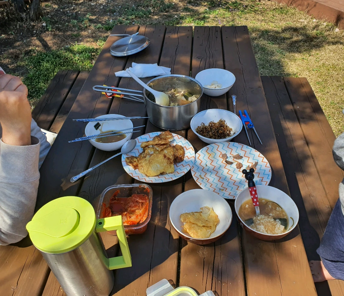 그리고 이렇게 평소에도 대충 차려서 먹었습니다. 애들과 같이 있다 보니 이쁘게 만들어 먹는 건 어려웠지만, 맛있게 먹을 수 있고, 집에서 먹는 것과 완전 다른 기분을 맛볼 수 있었습니다.