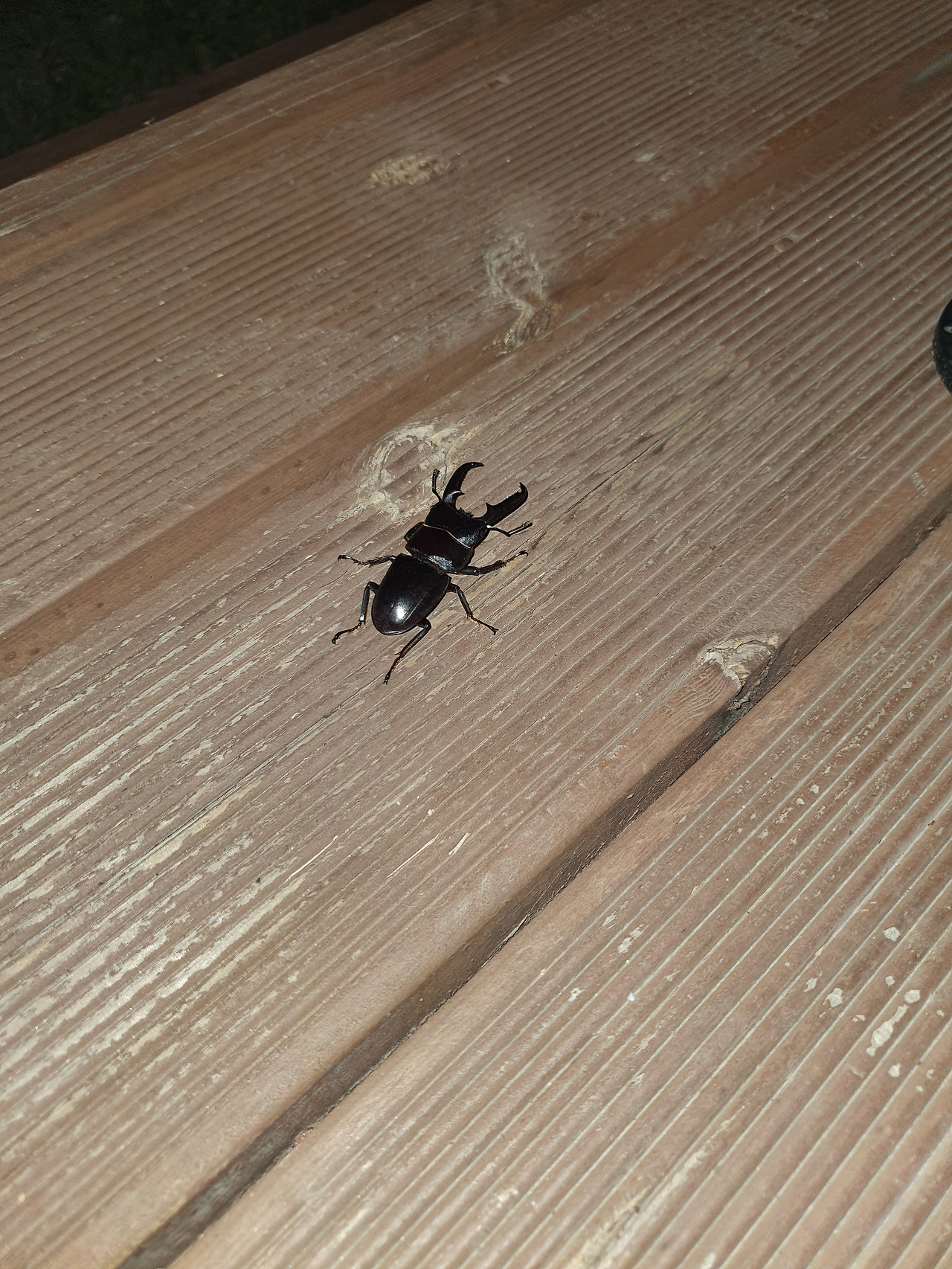 날씨 좋은 날은 저녁 먹고 동네 한 바퀴 돌았는데, 사슴벌레, 장수풍뎅이가 많이 있었습니다. 거의 매일 한 마리씩 잡아온 것 같아요. 그 사슴벌레들이 알도 낳았고, 그렇게 큰 애벌레도 키웠습니다.
